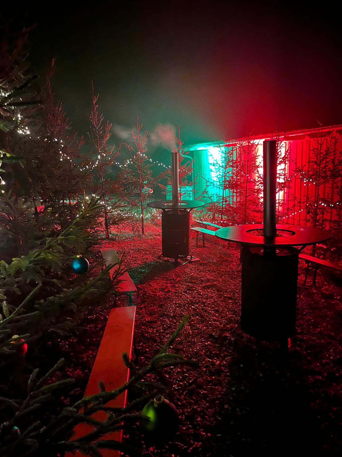 Offene Feuersstellen und 3 wärmende Außenöfen trugen zur Wohlfühlatmosphäre bei .